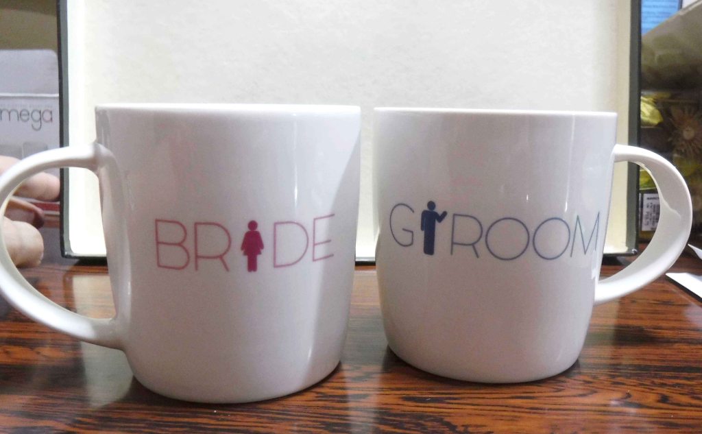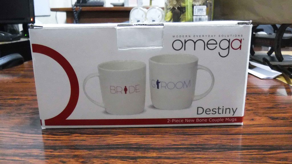 I was just strolling around when I saw this from a random display in the middle of the aisle. I thought, hey, why not? They can drink their morning coffee with this mug! No matter where they are, they can use their own cup to feel like they’re together with their better half! (I’m trying to justify my reason for buying this aside, from the cup sign that says BRIDE and GROOM)