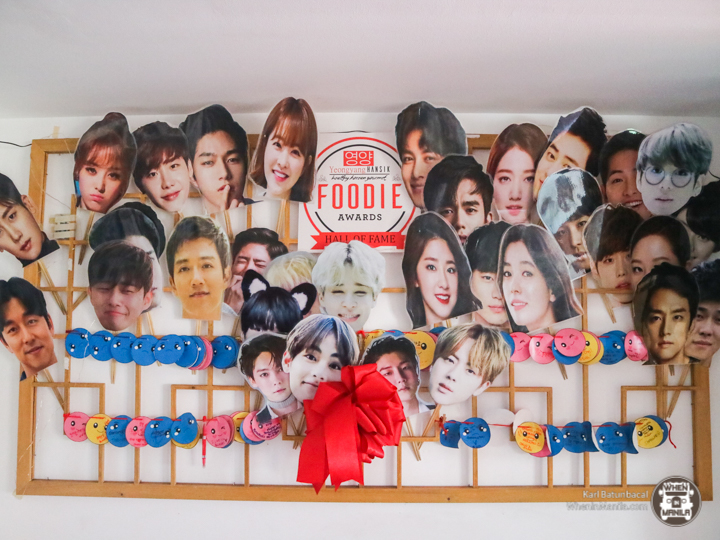 And of course, if you opt to eat inside, that’s okay too. The room upstairs is air-conditioned, and shows you all their gimmicks, such as the Wall of Fame (pose disguised as your fave K-star), & K-Fest (their scheduled K-nights where you can learn how to make kimchi, watch dramas/movies, and see K-pop cover groups perform).