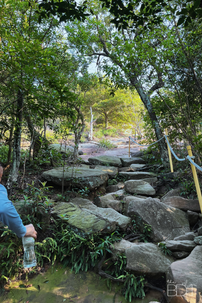 An elderly man was also geared up when we got to the trailhead. After exchanging smiles and nods, he went ahead. I remember him looking back as if urging us to follow him. We were initially confident with our fitness levels, but I don’t know if it’s the lack of activity for the past couple of days, or it’s just locals being locals, but we couldn’t keep up. HAHA. On the other hand, he just breezed his way up the stairs with little effort, and he was out of our sight in no time. The thing is — walking up the stairs looks easy, but the irregular and big gaps WILL tire you out.