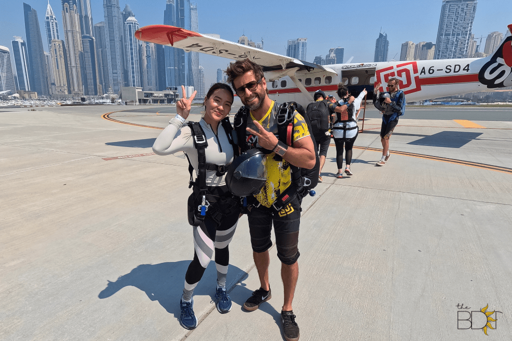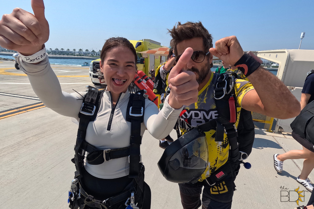 Since I’m not one to practice this extreme sport regularly, I availed of Skydive Dubai’s tandem skydiving package. This is the best option for most first-timers because no previous experience is required 😉 There will just be an expert instructor who will do all the work for you. It saves anyone the trouble of hesitating from the nerve-wracking jump and opening of the parachute. Because hey, what if you faint?