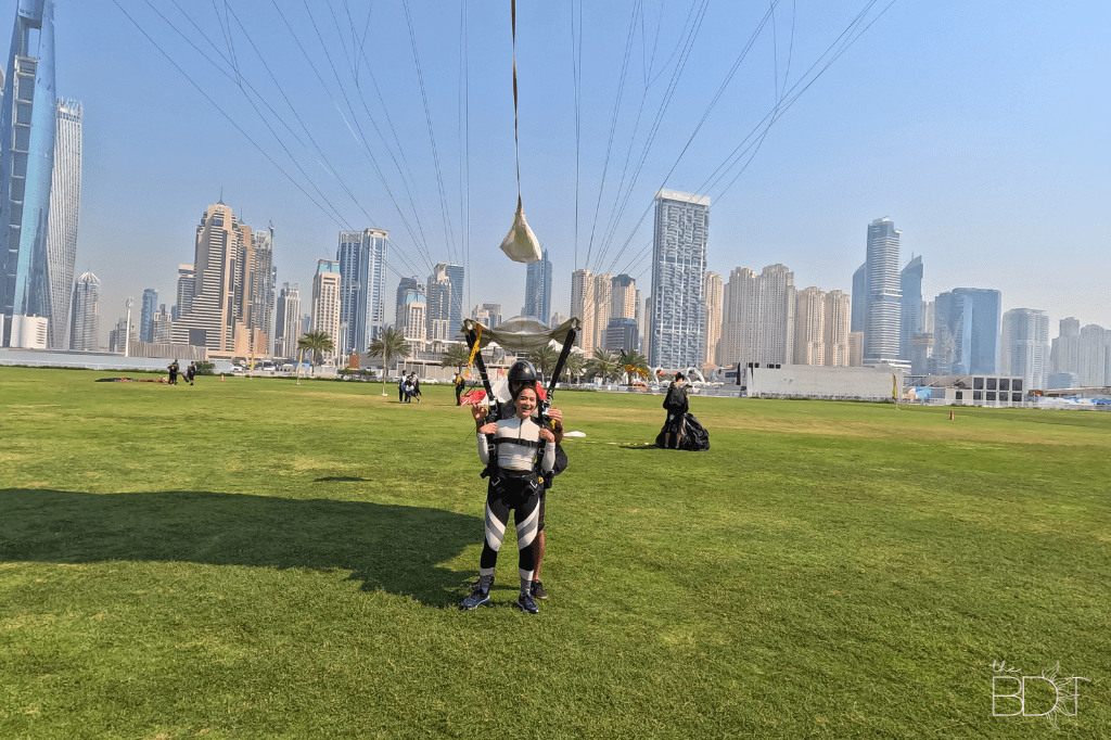 Landing was smoother than expected, but just remember to keep your legs up when instructed. The videographer was there waiting for me to see my post-jump reaction and to hear a few comments about the experience. I kept smiling the whole time.