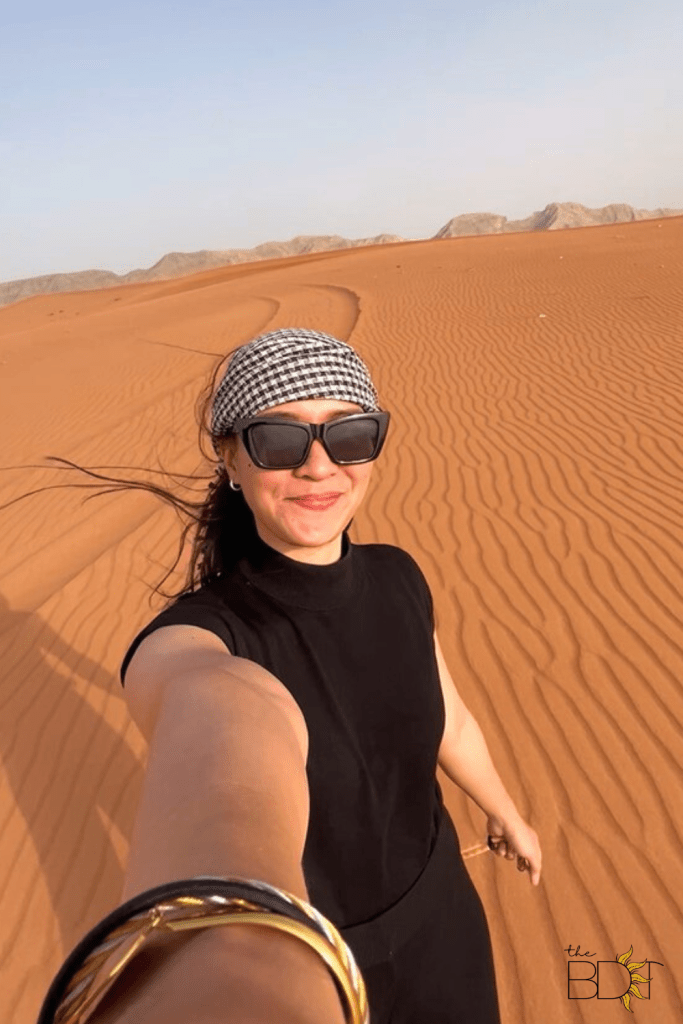 Dune bashing felt more like a “controlled” rollercoaster because of the shifting terrains. There will be times when your driver will experiment with the speed and momentum to give you the best thrill possible. I just love how Mati Khan unapologetically went all out. The most exciting part was when the 4×4 angled just enough to make you feel like it might tip over! I was seated on the shotgun seat, but I heard it’s crazier for those at the back! One thing’s for sure… you need to hang on tight because there is absolutely no way you’d get bored with this activity. If I were you, I’d check for promos and book a flight to Dubai immediately hahaha!